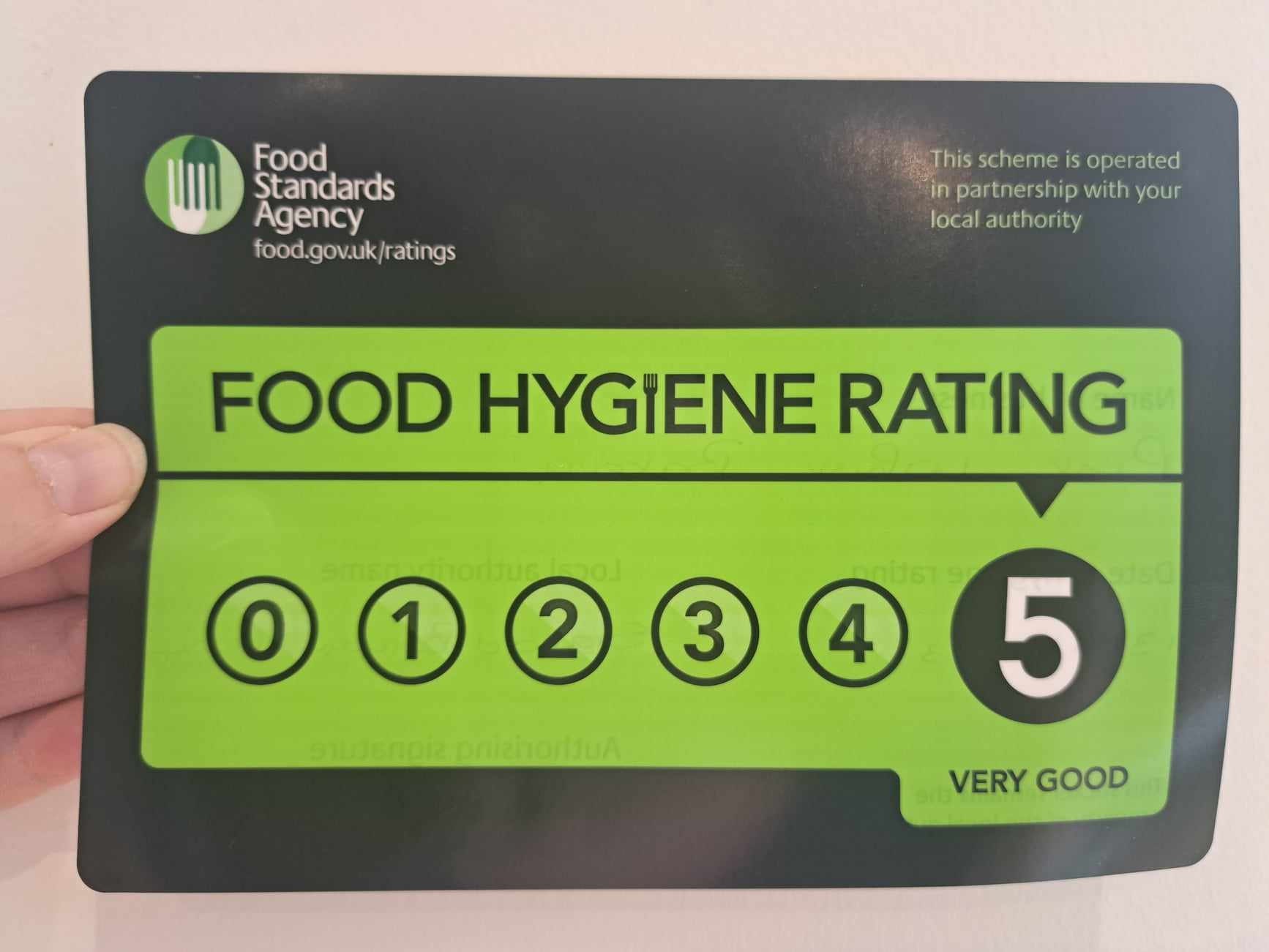 We hold a level 3 food handling certificate and 5 star local authority hygiene rating .